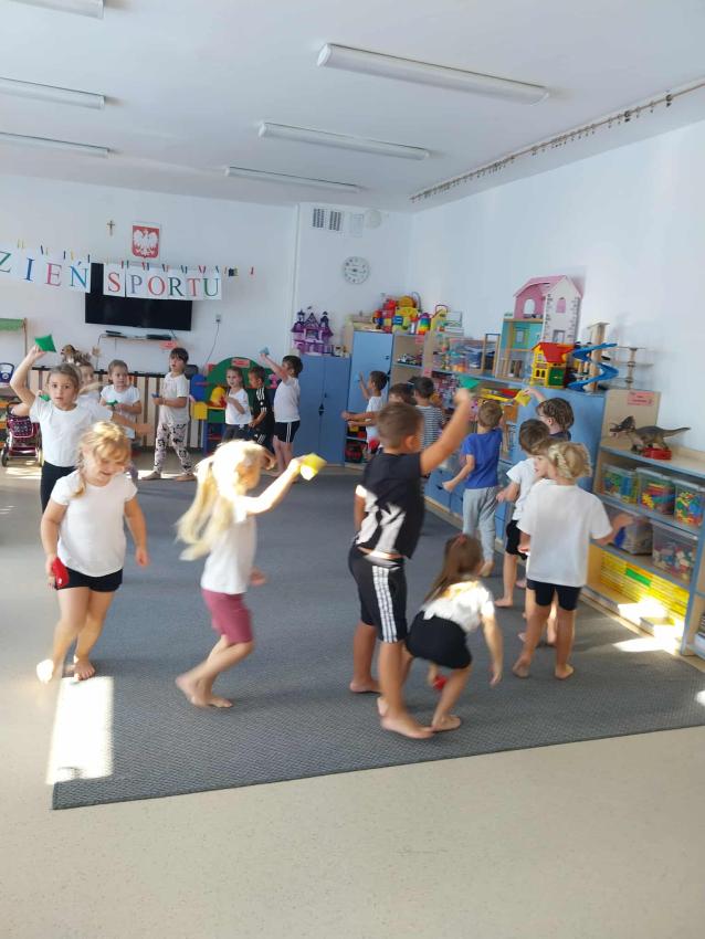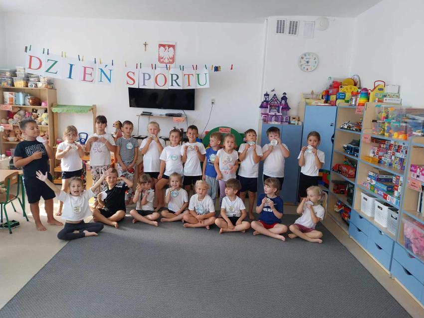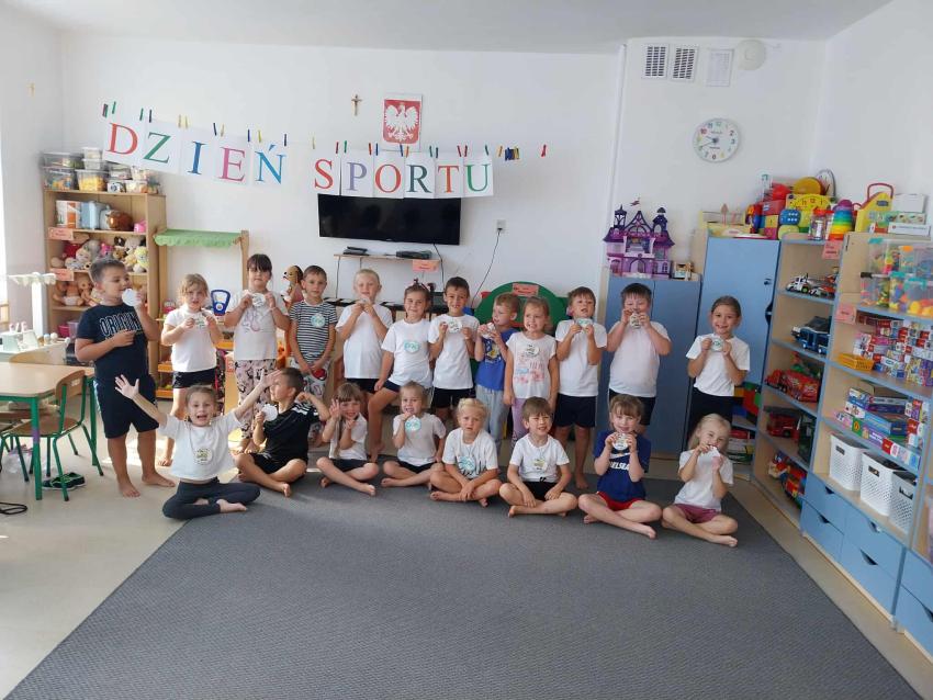 Dzień Gimnastyki, Dzień Sportu, Narodowy Dzień Sportu - pod takim hasłem w minionych dniach odbyły się zajęcia sportowe dla naszych milusińskich. Główne cele zajęć sportowych w przedszkolu to rozwijanie sprawności motorycznej (szybkość, zwinność, koordynacja), kształtowanie nawyków prozdrowotnych, rozwój społeczny (współpraca, zdrowa rywalizacja), budowanie poczucia pewności siebie poprzez kontrolę nad ciałem, a także rozwijanie wyobraźni i kreatywności dzięki tematycznym zabawom ruchowym. Zajęcia te mają na celu integrację dzieci, nauczenie ich zdrowego rozładowywania energii i pokazanie, że sport to aktywny i atrakcyjny sposób na spędzanie czasu. Po zakończonych zajęciach dzieci otrzymały pamiątkowe medale, dyplomy oraz inne niespodzianki. Gratulujemy wszystkim dzieciom aktywnego udziału w zajęciach!