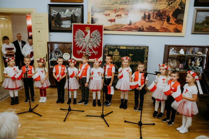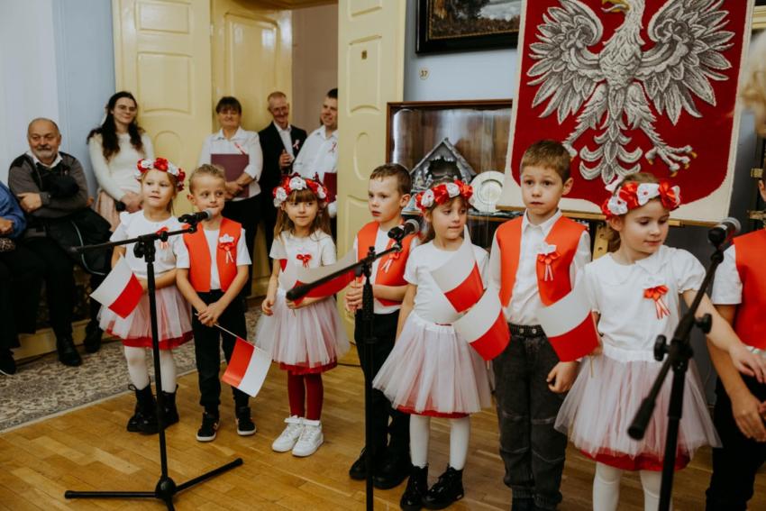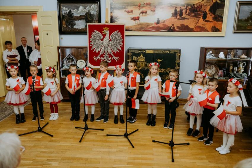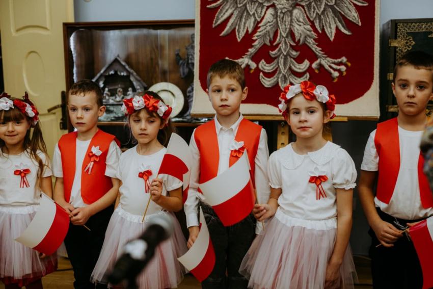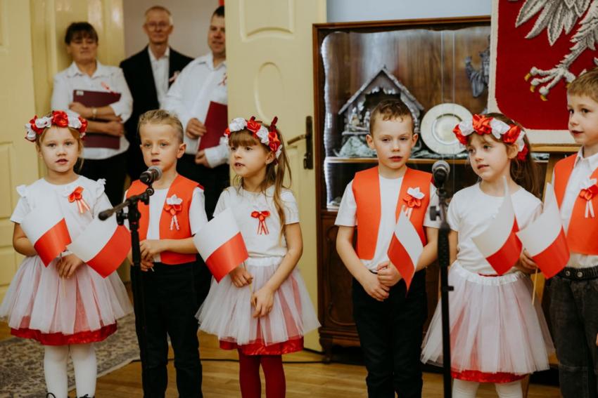 13.11.2025r. w Trzebiatowskim Ośrodku Kultury  odbył się koncert  poświęcony Narodowemu Świętu Niepodległości pod hasłem " Raduje się serce, raduje się dusza".  Publicznośc która wypełniła salę widowiskową , mogła wysłuchać  przygotowanego programu artystycznego , łączącego patriotyczny repertuar  z refleksją nad drogą Polski do wolności .  Na scenie wśród wielu artystów wystąpiły  również dzieci  z  grupy Jeżyki. W  ich wykonaniu  zabrzmiały pieśni niepodległościowe oraz wiersze o naszej ojczyźnie . Występ przedszkolaków zakończył sie gromkimi brawami a wielu uczestnikow podkreślało , że była to piękna i wzruszająca forma wspólnego  wielopokoleniowego świętowania.