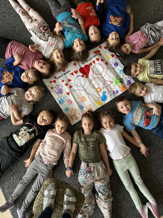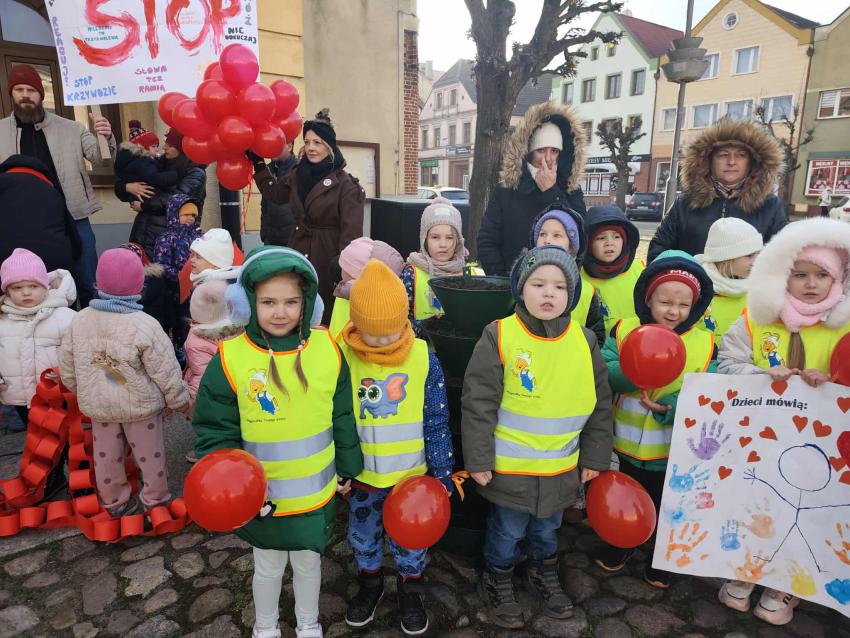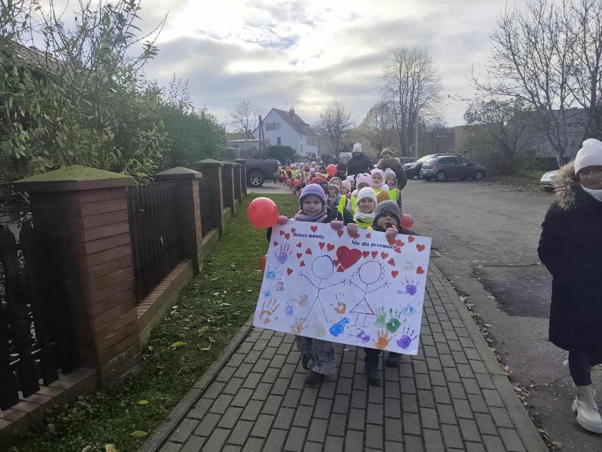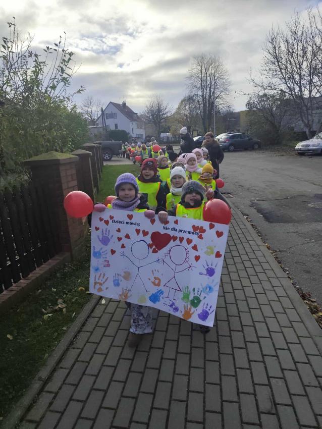 19 listopada 2025r. dzieci z naszego przedszkola wzięły udział w marszu przeciw przemocy pod hasłem „Przemoc rodzi przemoc- zerwij łańcuch”, w ramach ogólnopolskiej kampanii „Dzieciństwo bez przemocy”. W wydarzeniu wzięli udział zarówno najmłodsi mieszkańcy miasta, jak i dorośli, wspólnie manifestując sprzeciw wobec wszelkich form krzywdzenia.