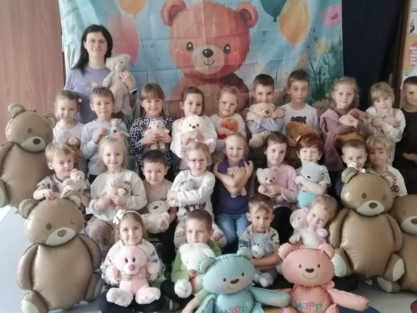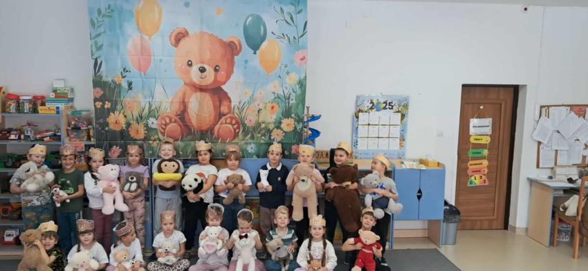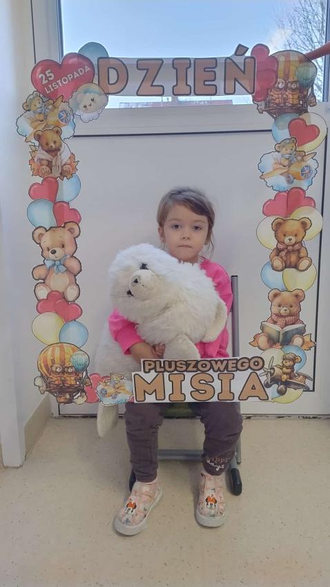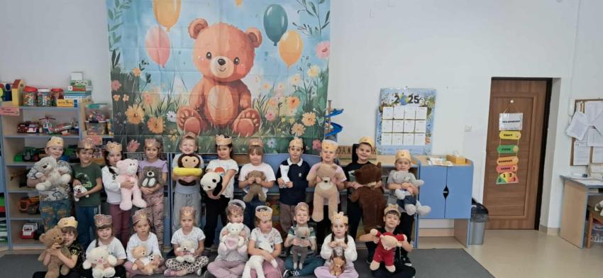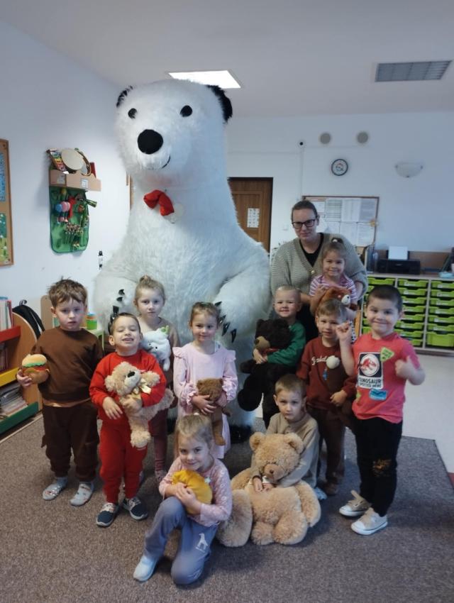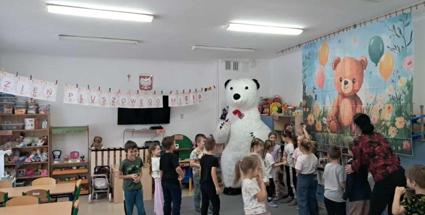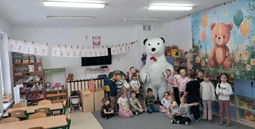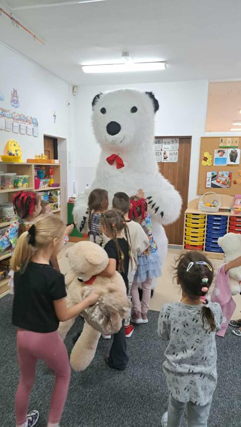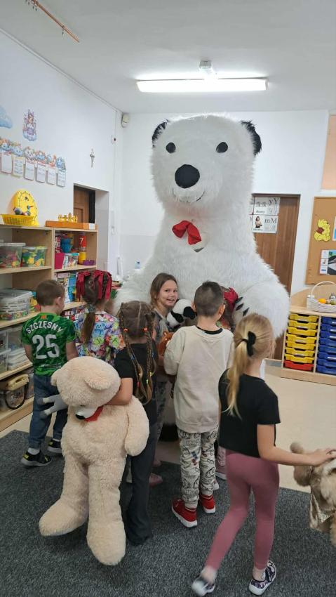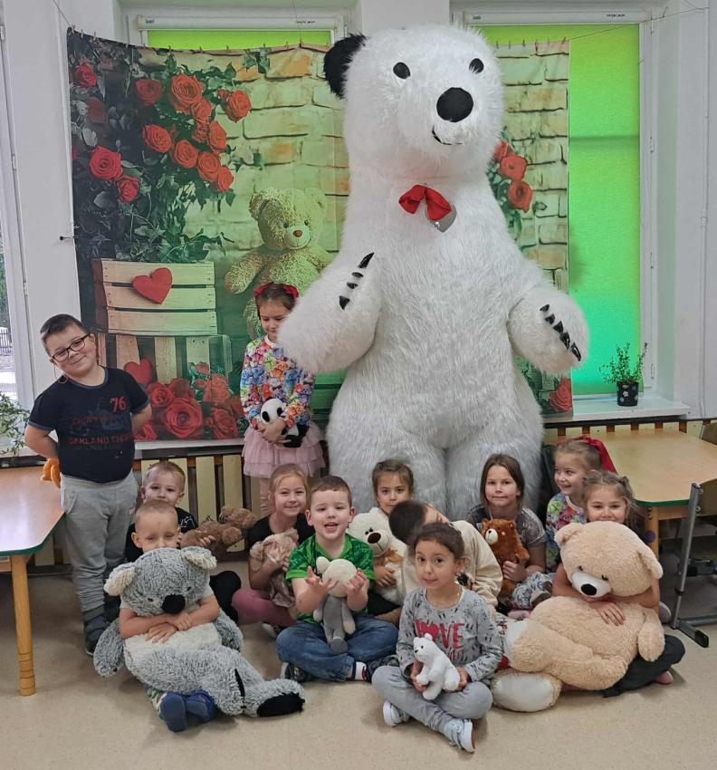 25 listopada swoje święto obchodzi Pluszowy Miś – najmilsza zabawka, niezastąpiony towarzysz zabaw i przytulanka, która potrafi ukoić każdego przedszkolaka. To właśnie on jest powiernikiem dziecięcych sekretów, najlepszym przyjacielem na dobre i złe chwile. Z tej okazji nasze przedszkole wypełniło się wyjątkowymi gośćmi – ukochanymi pluszakami dzieci. Przedszkolaki przyszły ze swoimi „milutkimi przyjaciółmi”, a wśród nich można było zobaczyć misie małe, średnie i ogromne, brązowe, białe, różowe i kolorowe. Każdy z nich był jedyny w swoim rodzaju i wzbudzał zachwyt wszystkich. Dodatkową i niecodzienną atrakcją tego dnia, były odwiedziny Białego Misia, który ochoczo odwiedził każdą grupę i zrobił z przedszkolakami pamiątkowe zdjęcia. Następnie dzieci zostały zaproszone do wspólnej zabawy w misiowej krainie. Poznały historię święta Pluszowego Misia, a w kolejnej części wzięły udział w przygotowanych atrakcjach: zabawa ruchowych, plastycznych, konkursach, quizach, zgadywanka oraz misiowej zabawie tanecznej. Ten dzień w przedszkolu pełen był uśmiechu, radości oraz wspólnej zabawy. Mamy nadzieję, że to wielkie misiowe przyjęcie zostanie w naszych wspomnieniach na długi czas. Serdecznie dziękujemy Panu Łukaszowi Przewoźnikowi za wzbogacenie tego dnia obecnością Białego Pluszowego Misia.