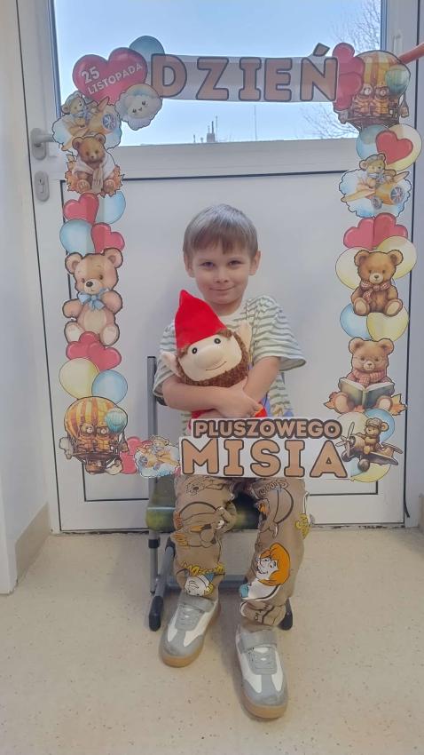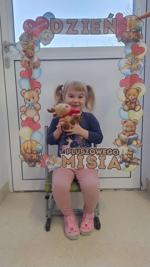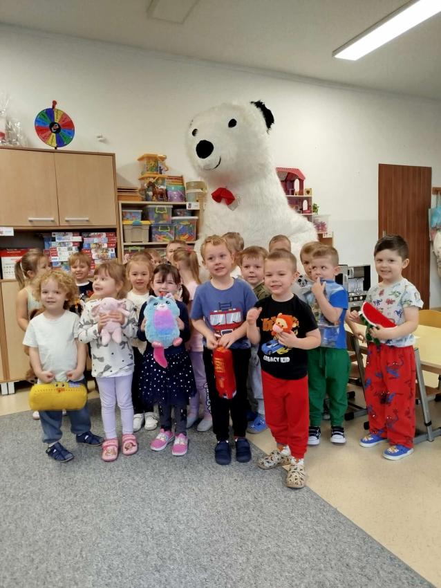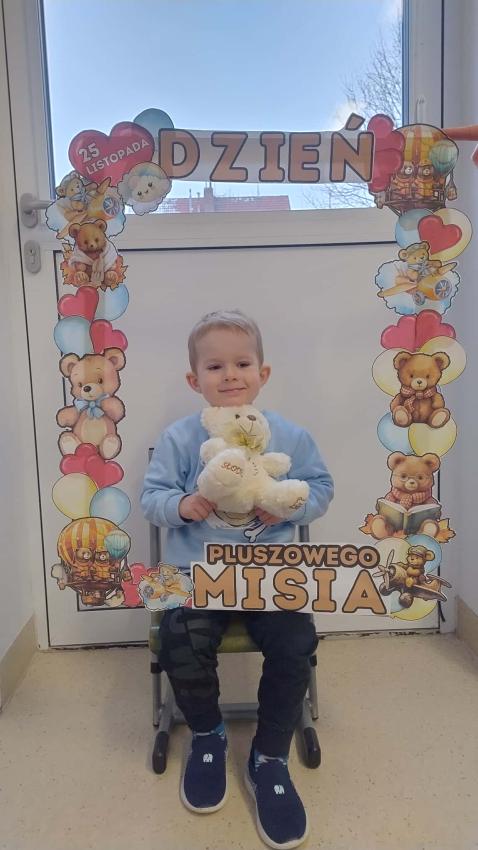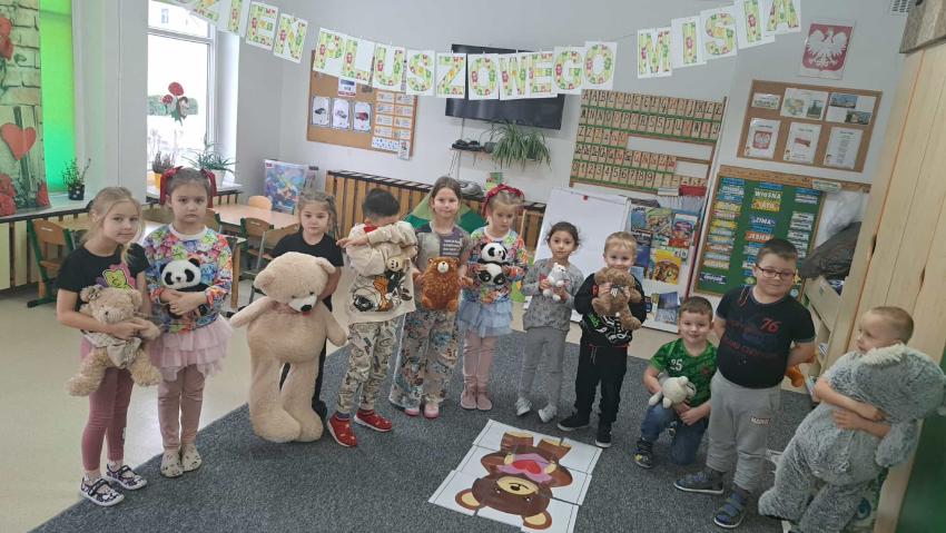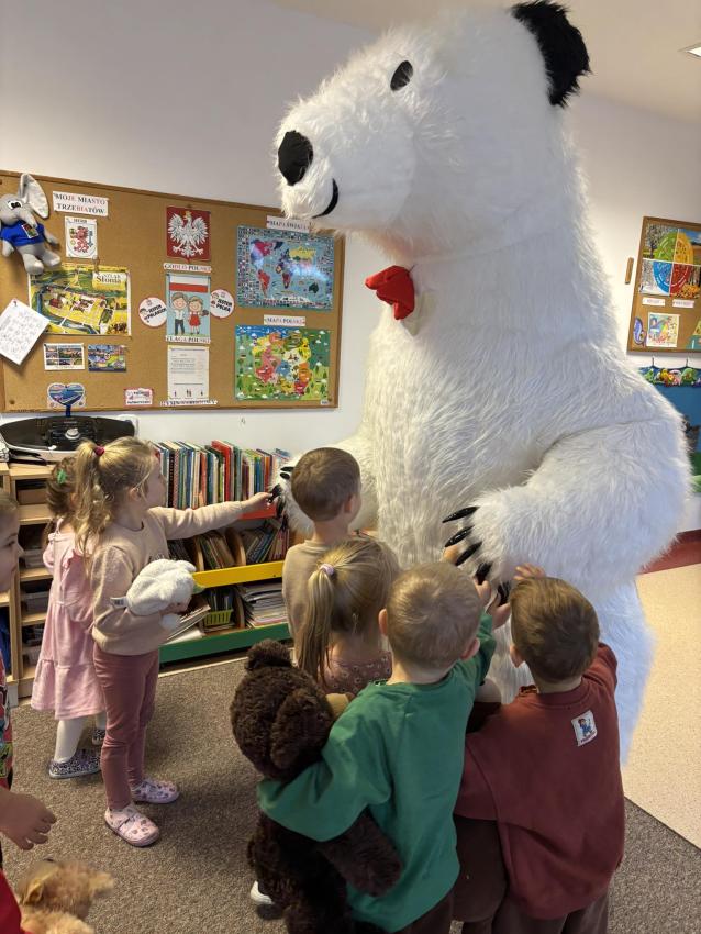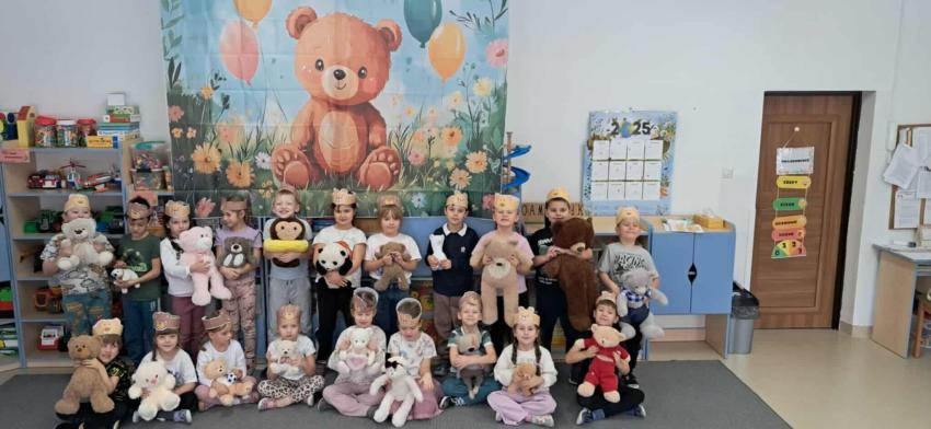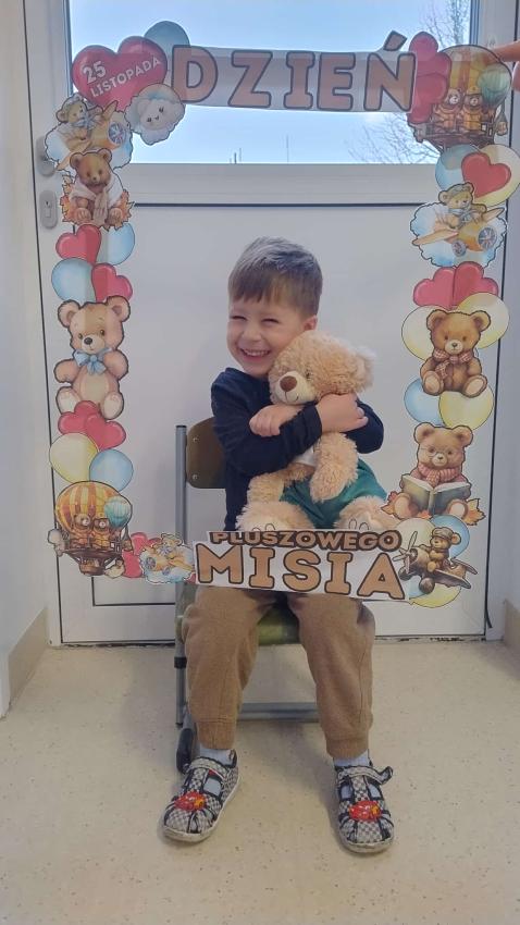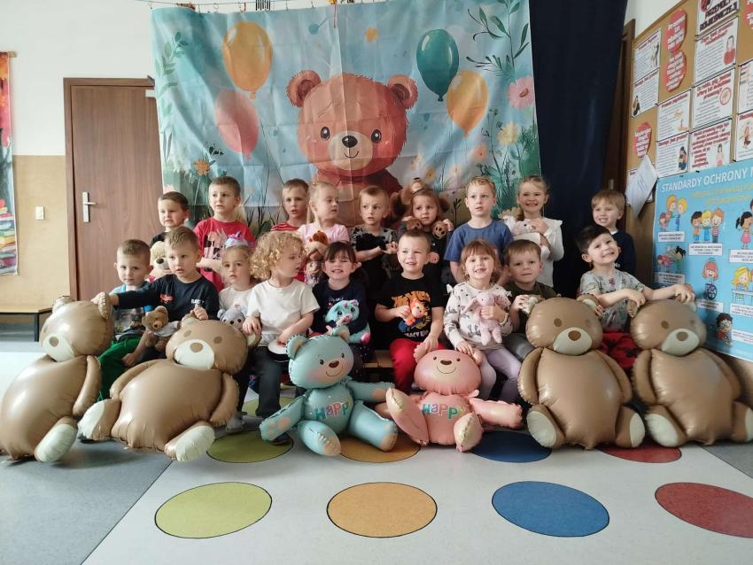25 listopada swoje święto obchodzi Pluszowy Miś – najmilsza zabawka, niezastąpiony towarzysz zabaw i przytulanka, która potrafi ukoić każdego przedszkolaka. To właśnie on jest powiernikiem dziecięcych sekretów, najlepszym przyjacielem na dobre i złe chwile. Z tej okazji nasze przedszkole wypełniło się wyjątkowymi gośćmi – ukochanymi pluszakami dzieci. Przedszkolaki przyszły ze swoimi „milutkimi przyjaciółmi”, a wśród nich można było zobaczyć misie małe, średnie i ogromne, brązowe, białe, różowe i kolorowe. Każdy z nich był jedyny w swoim rodzaju i wzbudzał zachwyt wszystkich. Dodatkową i niecodzienną atrakcją tego dnia, były odwiedziny Białego Misia, który ochoczo odwiedził każdą grupę i zrobił z przedszkolakami pamiątkowe zdjęcia. Następnie dzieci zostały zaproszone do wspólnej zabawy w misiowej krainie. Poznały historię święta Pluszowego Misia, a w kolejnej części wzięły udział w przygotowanych atrakcjach: zabawa ruchowych, plastycznych, konkursach, quizach, zgadywanka oraz misiowej zabawie tanecznej. Ten dzień w przedszkolu pełen był uśmiechu, radości oraz wspólnej zabawy. Mamy nadzieję, że to wielkie misiowe przyjęcie zostanie w naszych wspomnieniach na długi czas. Serdecznie dziękujemy Panu Łukaszowi Przewoźnikowi za wzbogacenie tego dnia obecnością Białego Pluszowego Misia.