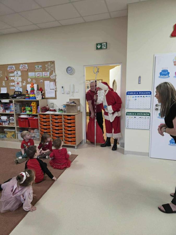 W piątek, 5 grudnia, w naszym przedszkolu panowała wyjątkowa, świąteczna atmosfera. Każdą grupę odwiedził Mikołaj wraz ze swoim pomocnikiem, przynosząc dzieciom moc radości i oczywiście - prezenty!