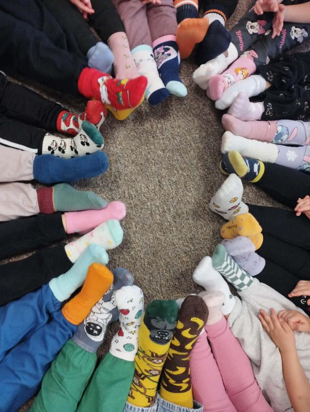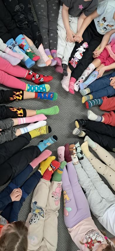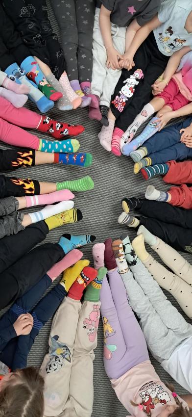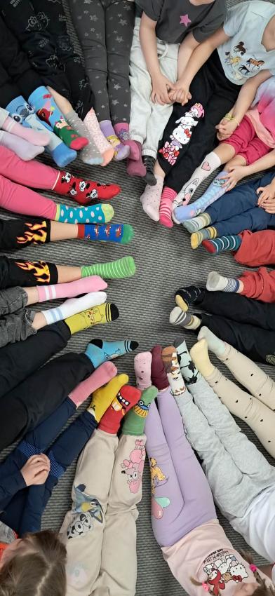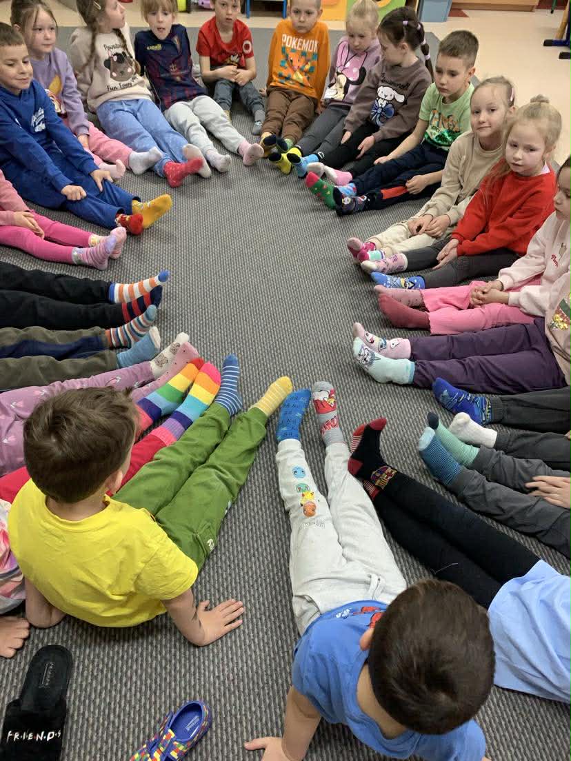 21 marca to wyjątkowa data – Światowy Dzień Osób z Zespołem Downa. Tego dnia ludzie na całym świecie zakładają kolorowe skarpetki, by symbolicznie wyrazić solidarność z osobami z trisomią 21. To święto różnorodności, akceptacji i edukacji społecznej. Data 21 marca nie jest przypadkowa – nawiązuje do dodatkowego, trzeciego chromosomu w 21. parze, który powoduje zespół Downa. Kolorowe skarpetki stały się globalnym symbolem tego dnia. Ich różnorodne wzory i odcienie podkreślają, że każdy z nas jest wyjątkowy. W tym roku obchody tego dnia przypadły na piątek 20 marca. W przedszkolnych grupach odbyły się przeróżne zabawy integracyjne, zajęcia edukacyjne wyjaśniające znaczenia święta oraz zabawy plastyczne. O 9:00 wszystkie grupy z przedszkola przy ul. Waryńskiego wybrały się na stadion, aby wziąć udział w III Biegu Kolorowych Skarpetek. Na stadionie na dzieci czekało wiele atrakcji, natomiast główną był bieg w poszczególnych kategoriach oczywiscie w KOLOROWYCH SKARPETKACH. Przedszkolaki z zaangażowaniem wzięły udział w biegu, a koledzy i koleżanki z najmłodszych grup gorąco im kibicowały. Wszyscy uczestnicy biegu otrzymali pamiątkowe medale. Z pewnością udział w tego rodzaju inicjatywach zwiększa świadomości na temat życia osób z Zespołem Downa. Przyczynia się do promowania integracji, solidarności z osobami z Trisomią 21 oraz walką z dyskryminacją osób niepełnosprawnych.