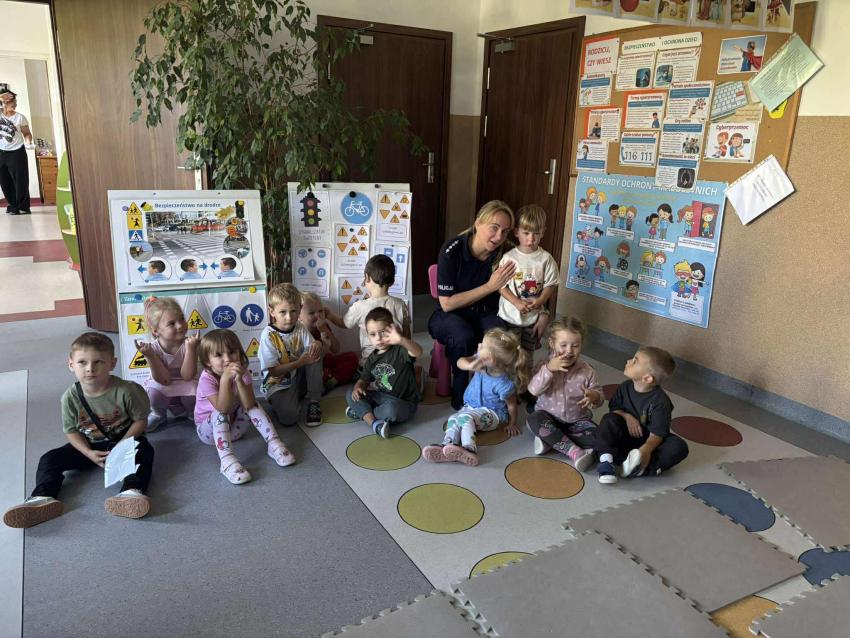W naszym przedszkolu kładziemy duży nacisk na bezpieczeństwo oraz edukację związaną z bezpieczeństwem. Dlatego we wtorek 23.09.2025 naszych przedszkolaków odwiedziła Pani Policjantka z Komendy Powiatowej Policji w Gryficach pani Agnieszka Podgórska..