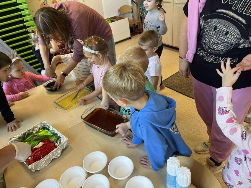 Głównym punktem dnia było uroczyste odśpiewanie „Sto lat” przez dziewczynki, które z ogromnym zaangażowaniem wyraziły swoje życzenia dla chłopców. Każda grupa przedszkolna miała również przygotowane specjalne życzenia, pełne ciepłych słów i uśmiechów. Dziewczynki wręczyły chłopcom symboliczne prezenty, które spotkały się z dużym entuzjazmem i radością.